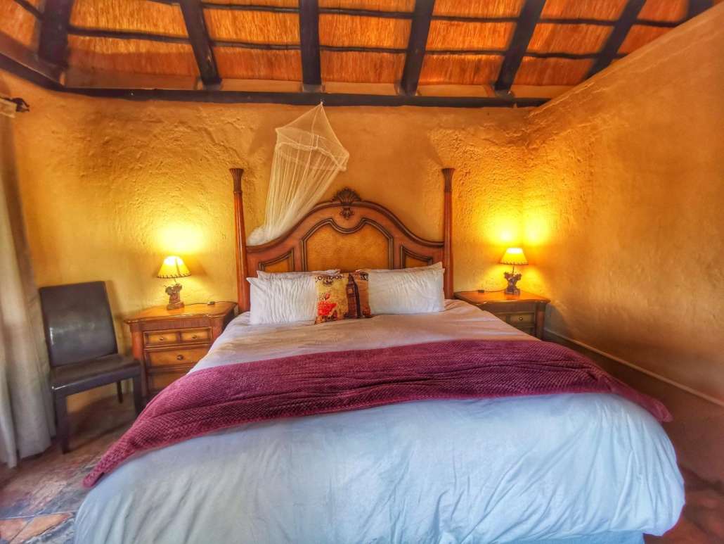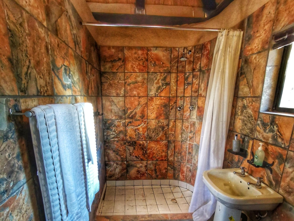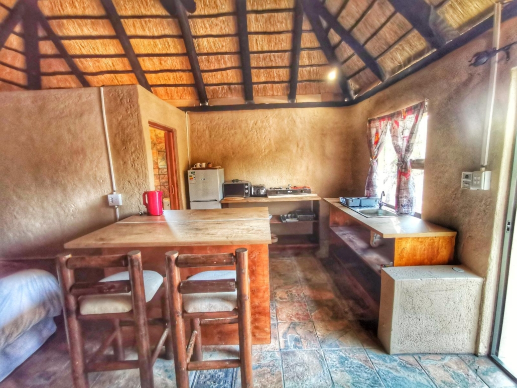 Unit 7 Ficus really gives you that amazing bushveld ambience. Thatch roofing and an open plan bedroom and kitchenette make you feel right at home. Outside there is a patio with a braai area right on the border of the camp next to the fence and wildlife.